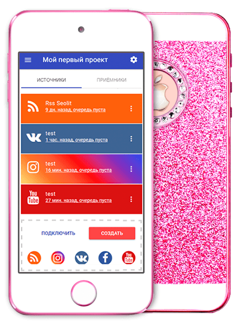 Кросспостинг в ВКонтакте легко настроить с помощью онлайн-сервиса SEOlit. Источниками могут стать такие соцсети, как Facebook, YouTube и Instagram. Если же вы хотите продвигать группу ВК ещё и в других соцсетях, то можете настроить кросспостинг из ВКонтакте в Facebook, Instagram, Одноклассники, Twitter, LiveJournal, LinkedIn, Pinterest, Мой Мир и в мессенджер Telegram. SEOlit также поможет настроить автопостинг с сайта в перечисленные соцсети-приёмники через RSS/Atom-ленту. Есть функция премодерации для автопостинга и кросспостинга в ВКонтакте: это позволяет выбирать для публикации в группе только важные посты. Отложенный постинг и постинг по расписанию также можно вести с помощью SEOlit. Для форматирования текста постов на SEOlit разработаны специальные шаблоны. В шаблон можно добавить форматирование текста (шрифты, заголовки, списки и т.д.), фотографии и видеозаписи, хэштеги, ссылки на внешние источники и многое другое. Создав шаблон, вы можете привязать его к аккаунту в ВКонтакте или любой другой соцсети. Тогда все записи будут появляться в том виде, в каком вы хотите их видеть.